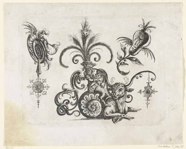 This print shows an acanthus motif with two birds, made by Cesare Domenichi. The acanthus leaf, with its deeply lobed form, is an ancient symbol of regeneration, and it's been used across millennia to adorn sacred and significant spaces. Here, its presence suggests themes of growth and renewal. Notice how the birds interact with the acanthus. Birds, often seen as messengers between the earthly and divine realms, add another layer of meaning. They evoke themes of freedom and transcendence, connecting the earthly with the celestial. Consider the continuous presence of such motifs throughout art history—from ancient Greek architecture to Renaissance paintings. The echo of the acanthus and bird pairing resonates with our collective memory, a powerful force engaging viewers on a deep, subconscious level, reminding us of the enduring power of nature and the spirit. It’s a motif that returns and evolves.