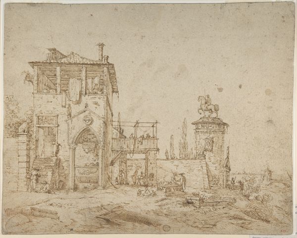 Cornelis Cort created this drawing of the Gezicht op het Forum van Nerva with pen and brush in the 16th century. Cort, who was a Dutch printmaker and draughtsman, was deeply influenced by the artistic and intellectual environment of his time. During the 16th century, Rome was a nexus of humanist scholarship and artistic innovation, with classical antiquity acting as a major source of inspiration. By examining the ruins of the Forum of Nerva, we gain insight into the Renaissance fascination with ancient Rome and how ruins became symbols of both past glory and the transience of human achievement. Cort's drawing is an exploration of the dialogue between the ruins and the city's contemporary life, highlighting the relationship between past and present. The sketch-like quality of the drawing captures the state of the ruins as objects of study and contemplation. It invites us to reflect on the passage of time and the cyclical nature of civilization. It's a physical manifestation of memory and history, evoking a sense of melancholy.