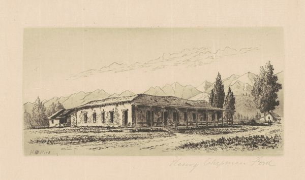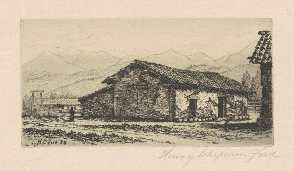 Henry Chapman Ford created this print of Mission San Antonio de Padua using etching, a printmaking technique, sometime during his life between 1828 and 1894. Ford, like many artists of his era, was captivated by the visual landscape of the American West and the history of Spanish missions in California. This image invites us to consider the complex and often romanticized narratives surrounding the mission era. While Ford’s print captures the aesthetic qualities of the mission, it is important to reflect on the complete history. The missions were sites of cultural exchange but also of profound disruption and violence for the Indigenous populations who were often forced into labor and conversion, and whose ancestral lands were appropriated. Ford's depiction encourages us to reconcile the artistic beauty with the underlying narrative of colonization and cultural transformation. It’s a visual reminder to critically examine the stories we tell about the past and whose perspectives are centered, inviting us to consider the perspectives of those whose experiences are often marginalized in mainstream historical accounts.