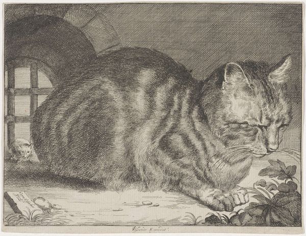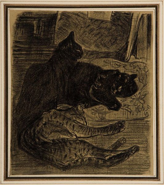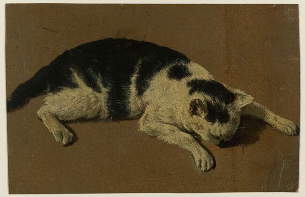 Curator: Immediately I sense profound tranquility emanating from this little painting. Editor: Let's delve into this captivating portrayal. We have here "Sleeping Cat," an oil on canvas executed by Pierre-Auguste Renoir in 1862. The painting is now held in a Private Collection. Curator: Yes, Renoir manages to capture that specific, almost liquid state of feline slumber, doesn't he? Observe how the artist uses a very muted palette and soft brushstrokes to enhance this gentle sense of suspended animation. Note especially the tonal variations on the curled-up fur, from the darker umber to the softer gold. Editor: Indeed, the composition itself reinforces this impression of peaceful rest. The cat is centrally located and occupies almost the entire pictorial space, emphasizing its vulnerability and total surrender to sleep. See the strategic placement of impasto—a clear effort to build a sense of warmth? I appreciate that the positioning eliminates almost all perspective save for what we find within the cat itself, suggesting a complete focus on a world created entirely for this one subject, at this one moment. Curator: It's interesting to consider this work within the broader context of Renoir's oeuvre. We see glimpses here of the nascent impressionistic style that would later define his career, notably in the concern for capturing light and atmosphere, albeit still within a more realistic framework. In my mind, this is less a portrait of a cat, than an early exercise for representing intimacy. Editor: And it works wonderfully! As a cat owner myself, I'm struck by how well he renders the subtle shift in color around the paws and muzzle; it mirrors a cat's penchant for seeking out a sunbeam. This intimate attention makes this early work by Renoir feel unusually heartfelt. I believe many animal lovers would gladly keep such an enchanting, comforting study by their bedside! Curator: Indeed, it encourages introspection. A delightful piece, especially to encounter Renoir stepping away from traditional portraiture at such an early point in his career. Editor: A charming find. It makes you appreciate even more what lay ahead.