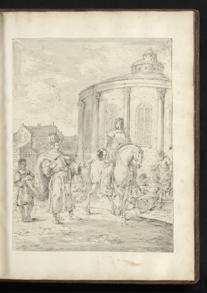 Leonaert Bramer made this drawing, "Alexander de Grote loopt niet mee tijdens de Olympische Spelen," with pen in grey ink and grey wash. Bramer's choice of pen and ink emphasizes line and form, creating a sense of depth and movement with delicate strokes. The use of grey wash adds subtle shading, enhancing the overall composition. It's a traditional art material but Bramer's expressive application lends a modern feel. The drawing feels unfinished, like a snapshot of a fleeting moment, and the quick sketch shows that the artist likely witnessed the event and wanted to remember it. Pen and ink allowed the artist to record a lot of detail very quickly. By focusing on these elements, Bramer elevates the artwork beyond a mere depiction of an event, inviting us to appreciate the social context and the act of witnessing history through the artist's eyes. The drawing reminds us that art is not just about the subject matter, but also about the skilled traditions, the artistic techniques, and the social issues.