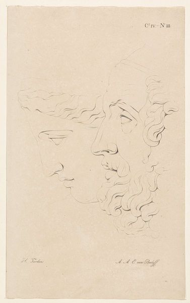 Jacob de Wit created this drawing, "Head of an Old Man and a Young Woman," using pen and brown ink, and brown wash. De Wit, a Dutch artist, lived during a time of significant social stratification. In this work, De Wit hints at the power dynamics embedded in age and gender. The old man is drawn with heavy lines and a stern expression, signifying authority, while the young woman is softer, her gaze lowered, evoking vulnerability. What are the possible narratives implied here? Is this a depiction of wisdom and innocence, or a more uncomfortable image of power imbalance and exploitation? De Wit's decision to juxtapose these figures prompts us to reflect on the values and biases that were perpetuated, and perhaps still persist today. This drawing serves as a reminder of the importance of critically examining the roles we assign to individuals based on their age and gender.