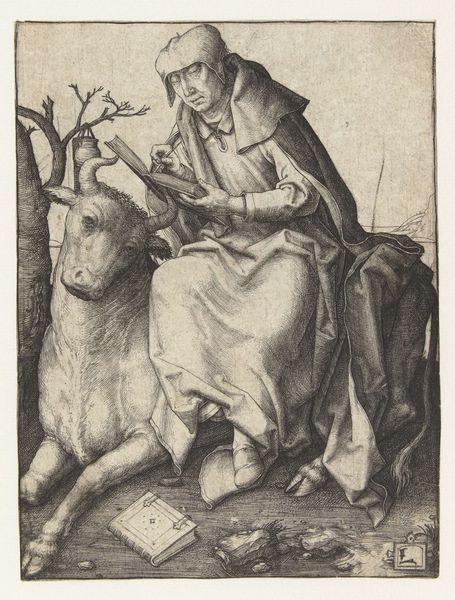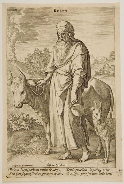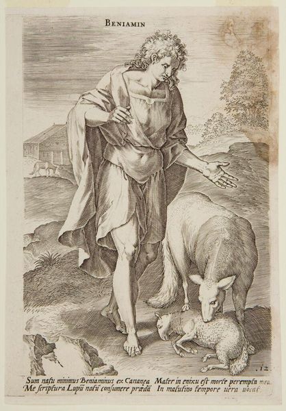 Editor: This is "Naphtali" by Johann Sadeler I, currently at the Harvard Art Museums. I’m immediately struck by the detail in the engraving, especially the way he renders the textures of the hair and fur. What can you tell me about this piece? Curator: Focusing on the materiality, consider the copperplate engraving process itself. The labor involved in meticulously creating these lines, the accessibility of prints versus unique paintings, and the role this played in disseminating imagery and ideas. It challenges the traditional notion of the artist as singular genius. Editor: So, it's not just about what it depicts but how it was made and distributed? Curator: Precisely. And how that process democratizes art, making it available beyond elite circles, impacting early modern consumption and visual culture. It gives the artwork another level of significance. Editor: That’s a completely different way of seeing it! I’ll remember to look at art through that lens from now on.