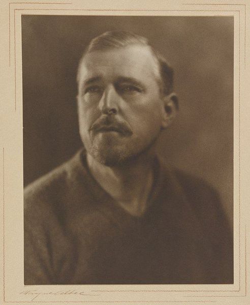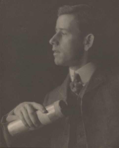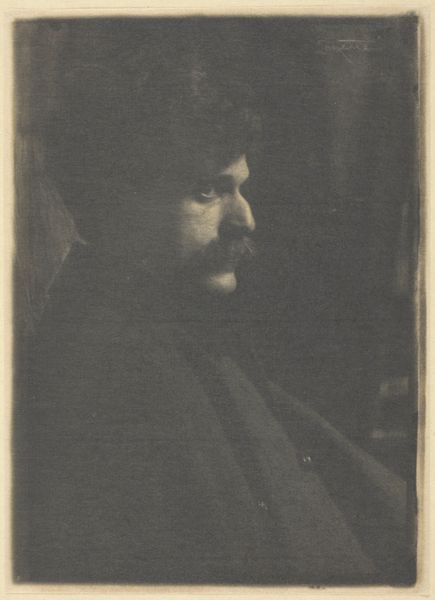 Curator: Immediately striking is this ethereal, almost dreamlike quality. It feels delicate, poised between clarity and fading away. Editor: This is "Portrait of Baron Adolph de Meyer" by Gertrude Kasebier, created around 1903. Kasebier was a prominent figure in the Pictorialist movement, which championed photography as fine art. I wonder how this movement defined, or perhaps redefined, the social perception of photography? Curator: Ah, yes, Pictorialism! You see how Kasebier manipulates the image to resemble painting? The soft focus, the muted tones… it’s less about sharp detail and more about mood, invoking a sense of timeless elegance. Notice the subtle halations around the head, almost like a halo. Editor: It is interesting that she would shoot the Baron in profile. De Meyer was himself a photographer and known for photographing fashionable society figures, often women. There seems to be a gendered dynamic here where Kasebier re-orients her male subject with soft aesthetics and delicate lighting. It raises the question of who gets to gaze and who is being gazed at in this early-20th-century social context. Curator: Precisely! Profiles have carried significant symbolic weight throughout history, representing authority, detachment, or introspection. Here, it perhaps underscores the Baron’s refinement, his aesthetic sensibility, presented in such a subtle manner. The absence of direct eye contact further contributes to the feeling that the viewer is being given an access, rather than issuing one. Editor: The soft focus aesthetic was intended to lift photography into the realm of art by breaking from purely documentary practices. How much do you think this had to do with securing its acceptance amongst academic circles, at the time? Do you think the lack of technical clarity opened the door for it? Curator: Indeed! By employing these impressionistic techniques, Kasebier aligns her photography with painting and drawing, art forms with higher status, and in doing so is creating and signaling entry into an entirely new visual order. It allowed photographers to claim their work wasn't merely mechanical reproduction but the result of artistic vision, a singular emotion transformed into imagery. Editor: And now we see the enduring effects of this period with photography's recognized contributions to high art across public museums and galleries. Seeing it displayed here only confirms how artists like Kasebier forged this new relationship and expanded the place for photography in culture. Curator: Ultimately, I feel we are left with the image of quiet elegance, of beauty found not in explicit detail but in suggestive nuance and subdued tones.