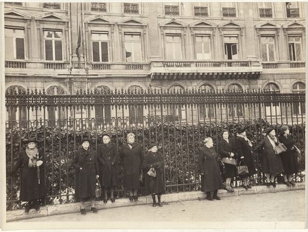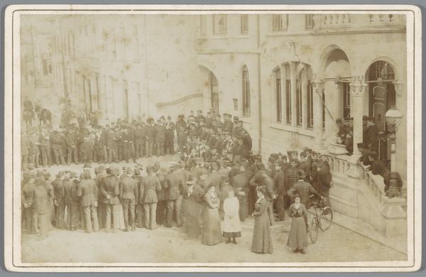 This small photograph, "Straatmarkt in Issoire" by Delizy, pulls you right into a bustling market scene. The sepia tones create a feeling of something old, like a memory, or a dream. There's a real sense of texture here, in the way the light catches on the cobblestones and the fabrics of the clothing. You can almost feel the energy of the crowd, the close proximity of the figures. My eye keeps getting drawn back to the figures in the foreground, with their backs turned, like they're inviting you into this world. It reminds me of being at a flea market - the thrill of not knowing what you'll find. The way the image fades out towards the top gives it an unfinished quality, like a fleeting moment captured in time. It makes me think of Atget, another photographer who wandered the streets, documenting the world around him with such loving care.