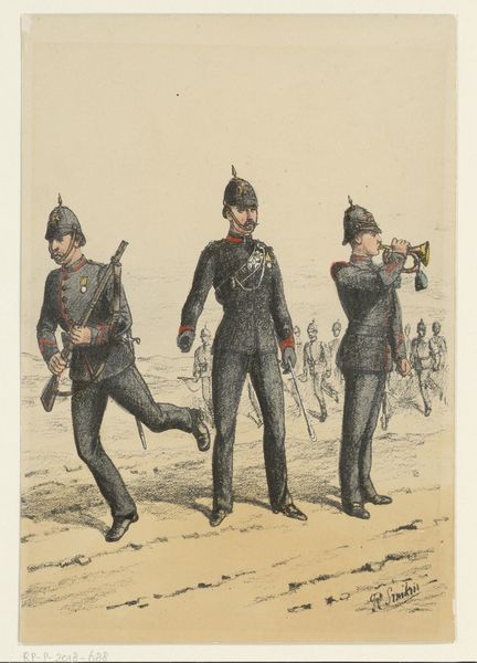 George File, who lived from 1855 to 1995, made this piece called Civil War Soldiers, and I love the watery blues he chose. It's like he’s remembering the past, letting it flow through him, and onto the page. You can almost feel the water in the paint, the way it spreads and pools. The color isn't quite solid; it's got a life of its own, like memories shifting over time. Look at the way the blue runs in the uniforms, how it creates shadows and highlights. It's not about getting every detail right; it's about capturing the feeling of these figures, the essence of their movement and their music. It’s about the process of remembering itself. The way the figures are arranged, marching across the page, reminds me of old folk art, like seeing history through a dream. It reminds you that art doesn't have to be perfect to be powerful. It’s in this imperfection that the piece finds its truth and beauty. It makes you consider what we choose to remember, and how we keep those memories alive through art.