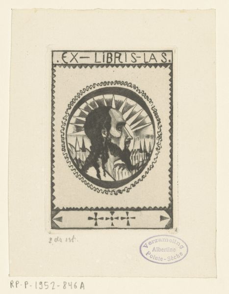 Editor: So, this is a stamp from 1907, "Postzegel met een portret van Mohammad Ali Sjah Qahar"—that's quite a mouthful! It’s a print on paper. It feels very…formal. There’s a photographic portrait inside the stamp’s design. What historical context are we seeing here? Curator: Well, this stamp offers us a glimpse into the complex relationship between monarchy, image production, and political power at the beginning of the 20th century in Persia, now Iran. Mohammad Ali Shah Qajar was the Shah of Persia at a time of immense upheaval, facing both internal constitutional challenges and external pressures from colonial powers. Editor: How did something like a stamp contribute to those pressures? Curator: Stamps, seemingly innocuous, were potent tools. Firstly, they represent state authority, right? In Persia at this time, stamps featuring the Shah were instruments in reaffirming and disseminating that authority. Distribution of images in this way mattered as Persia was in a precarious political situation, caught between Russian and British imperial ambitions. By controlling image production, the Shah’s regime hoped to maintain control. What do you notice about his regalia? Editor: The uniform looks really elaborate, and the crown too. A deliberate projection of power? Curator: Precisely. Notice, too, how photography is deployed, usually perceived as ‘realistic,’ and coupled with symbolic motifs like the crown. This aimed to bolster a specific image of the Shah, his authority and legitimacy amid a period of instability and public questioning. Editor: That makes a lot of sense. It's fascinating how much political weight a tiny stamp could carry. I'll definitely be seeing stamps differently now! Curator: Indeed! By understanding the socio-political context in which such an image was created and circulated, we begin to grasp the full import of even the smallest artifact.