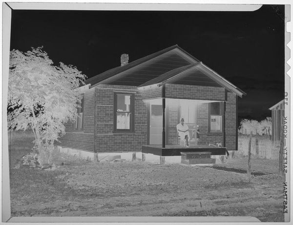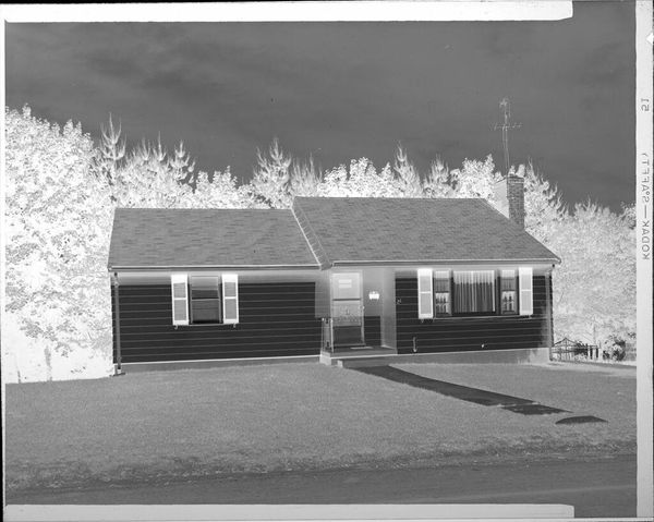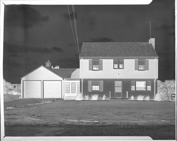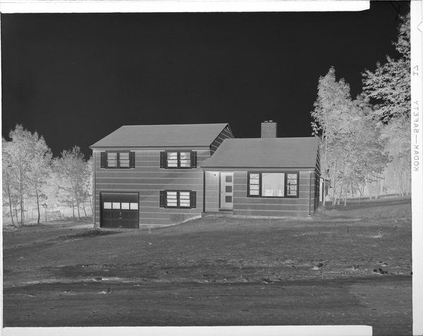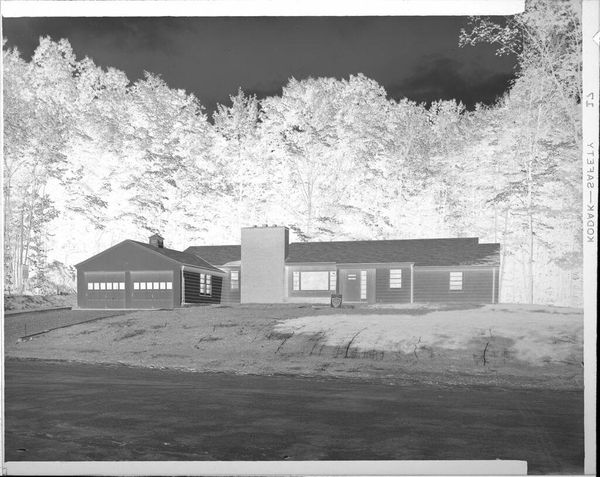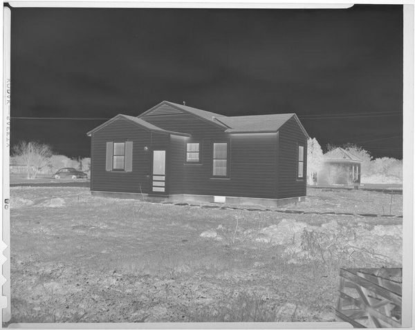 This Untitled photograph of a house on a hillside was made by Robert Burian, and its greyscale tones feel both immediate and timeless. The image is made up of subtle gradations in tone. I’m struck by the way the composition is built on contrasts: the dark sky against the light trees and the solid, dark house standing out against the pale hillside. The house itself has a particular presence, doesn't it? The dark siding with its light windows gives it an almost animated, cartoon-like quality, which contrasts with the realism of the scene. Look at the way the hill slopes up to meet the house, that strange dark band that runs diagonally from bottom left to top right. It’s like a visual hinge that locks the whole scene together, making this photographic study more than just a simple snapshot. It’s this balance that gives the image such a strong sense of calm and stillness. It makes me think of Edward Hopper and his paintings of American homes and towns; both artists capture something about the loneliness and beauty of everyday life.