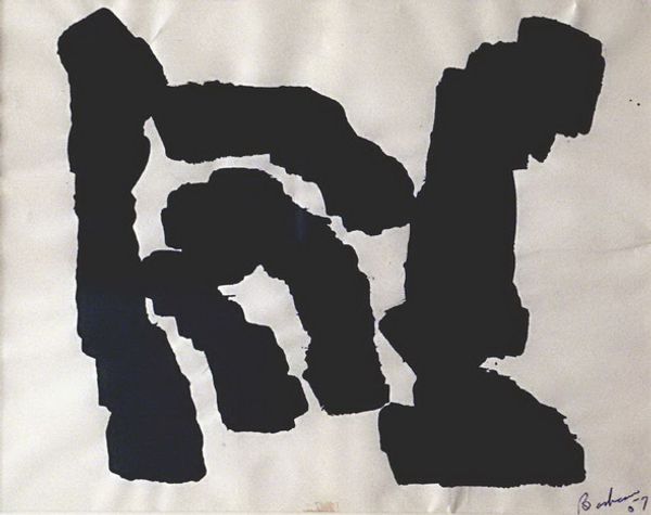 Julius Bissier made this small ink painting, 8.7.58, on paper in 1958. It’s like he's using the bare minimum: a muted palette of blacks, grays, and whites, and the simplest, most direct marks. It gives the impression of a kind of spontaneous meditation on the act of image making itself. The surface of the paper is mostly bare, allowing the material qualities of the ink to really stand out. Look at the large rectangular form on the left. Notice the way the ink bleeds and pools, creating subtle tonal variations. The textures gives depth without being overly descriptive. Those splatters near the top right seem almost accidental. But it’s like he’s saying something about the beauty of imperfection, embracing the unexpected. Bissier's work reminds me a little of Agnes Martin, both in their quiet, contemplative nature and their exploration of subtle variations within a limited range. It suggests a broader conversation about abstraction, simplicity, and the power of suggestion in art.