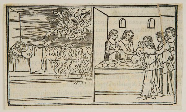Editor: This anonymous print, "Book IV.44. Postumia is charged and freed from breach of chasitity," presents a scene of judgment. The woman in the center seems to be pleading her case. What historical narratives might this scene represent? Curator: This print resonates with many historical moments where women's bodies and reputations became sites of intense scrutiny and judgment. Consider how such images reinforced patriarchal structures. The act of judging Postumia becomes a performance of power. What do you make of the composition, with the woman positioned between the male judges and the other figures? Editor: It feels as if she is alone, despite being surrounded by others. Curator: Precisely. The image also subtly perpetuates the male gaze. It invites us to consider how historical representations of women in legal or moral contexts often served to control and silence them. What do we learn from examining these power dynamics? Editor: I see how art can reveal the subtle ways in which societal norms impact the individual. Curator: Exactly. By understanding these dynamics, we can begin to deconstruct them.
