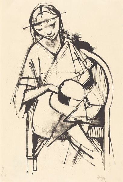Curator: Looking at René Beeh’s “Beggar” from around 1920, made with ink, the starkness of the lines immediately hits you. It feels almost frantic. What’s your gut reaction? Editor: A visceral sadness. He’s reduced, exposed... but strangely dignified. The hurried lines make it feel as though the artist had to capture him quickly, a fleeting moment of… what? Human recognition, maybe? It’s like empathy sketched on the run. Curator: That immediacy stems partly from its social context, wouldn't you say? Post-World War I Germany, economic hardship... images like this were potent social commentary. Beeh often used his art to highlight the plight of the marginalized. It’s not just a drawing; it’s a mirror reflecting society’s ills. Editor: True. And there's a deliberate rawness to the technique that underscores that. It’s as if polishing it, making it pretty, would betray the subject. The scratchy texture practically conveys the man's suffering. What do you think is most powerful? Curator: It is that gaunt face, with that half-resigned gaze. He isn’t asking; he is just existing. And Beeh has rendered him without romanticizing or sentimentalizing. He is who he is. The very deliberate lack of refinement to this man. It makes me consider the concept of what and whom we typically canonize, not only as humans, but more deeply and personally. Who am I not really “seeing”? Editor: And that directness forces the viewer into a confrontation. You can’t easily dismiss him, turn away. Beeh is asking you to bear witness, to acknowledge this individual’s existence. There's nothing subtle or metaphorical here; it is almost an activist statement, wouldn't you agree? Curator: Absolutely, an activist statement etched in ink. I find that even a century later, its impact is anything but diminished. Its simple honesty allows its subject a dignity that may be easily overlooked by some. Editor: Precisely, René Beeh gives not just art, but also something even bigger. He offers the greatest gift: perspective.
