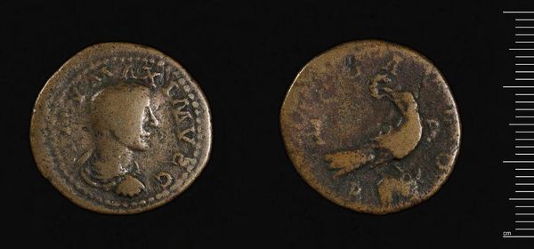 Editor: This is a coin of Nicomedia under Philip I, the Arab. The material itself, its weight and wear, speaks to its history as a unit of exchange. What can we learn from the materiality of this coin? Curator: The coin's copper alloy composition reveals a lot about Roman resource management and trade networks. Consider the labor involved in mining, smelting, and striking these coins, distributed across a vast empire. Are there variations in the metal content compared to coins from Rome itself? Editor: That’s a great point! So the coin isn't just about Philip's image, but about the entire production and economic system. Curator: Precisely! Its value as a symbol is intertwined with the real-world labor and materials that made it. Thinking about the workshops and the skilled artisans who produced this helps us understand its true worth.