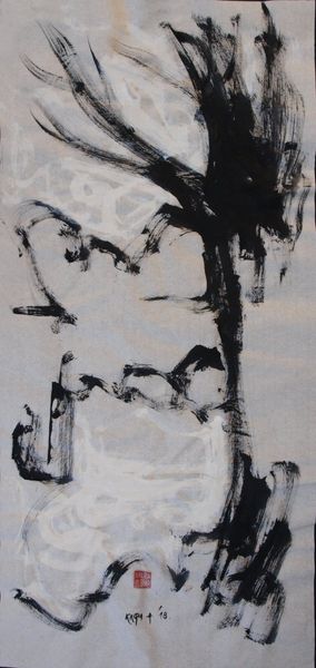 Alfred Freddy Krupa made this standing nude with ink on paper in 2016. What strikes me first is the economy of means, the way just a few strokes and washes of ink can suggest so much. It reminds you that artmaking is a process of selection, deciding what to include and, crucially, what to leave out. The ink bleeds and pools, creating these beautiful, unpredictable textures. Look at the dark shadows along the figure's left side, how the ink seems to blossom outward, blurring the boundary between the body and the surrounding space. This isn't about precise representation; it's about capturing a feeling, an essence. The lines themselves are so fluid and confident, almost calligraphic. See how they vary in thickness and pressure, creating a sense of movement and energy. This piece brings to mind the work of Egon Schiele, in its raw, expressive lines, but there's also something uniquely Krupa’s here, a kind of quiet intensity. Art is always a conversation, an echo of voices across time.