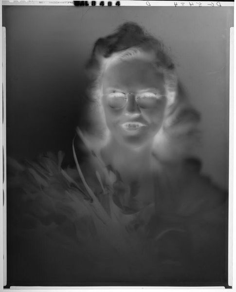 Paul Gittings created this untitled close-up image of a smiling woman with short, curly hair and a hat. The stark contrast between light and shadow dominates the composition, highlighting the woman's features. The inverse tonality creates an otherworldly atmosphere, challenging conventional notions of portraiture. This work pushes the boundaries of representation by subverting the expected relationship between light and form. The emphasis on tonal inversion invites a semiotic reading, where the familiar signifiers of portraiture, such as lighting and contrast, are destabilized. The structural play of light and dark prompts us to reconsider the very nature of visibility and the way images construct meaning. Ultimately, this image invites ongoing interpretation, pushing viewers to engage with the material and conceptual structures that shape our understanding of representation.