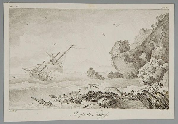 Editor: Here we have Pietro Parboni's "The Shipwreck," held at the Harvard Art Museums. It's a stark image, full of struggle. What strikes me is the vulnerability of these ships against the immense power of nature. How would you interpret this work? Curator: I see a commentary on maritime power and its fragility. Shipwrecks were a common occurrence, but their depiction served a socio-political function. This image, likely intended for public consumption, reminds viewers of the risks inherent in overseas trade and naval dominance. Editor: So, it's not just about the tragedy itself, but about reinforcing a societal awareness of these dangers? Curator: Precisely. Consider how images of shipwrecks might influence public support for naval infrastructure or insurance systems. This wasn't just art for art's sake; it played a role in shaping public opinion. Editor: That's a fascinating perspective. I hadn't considered the political implications of such a dramatic scene. Thanks! Curator: My pleasure! It’s a reminder that art often reflects and reinforces the structures of its time.