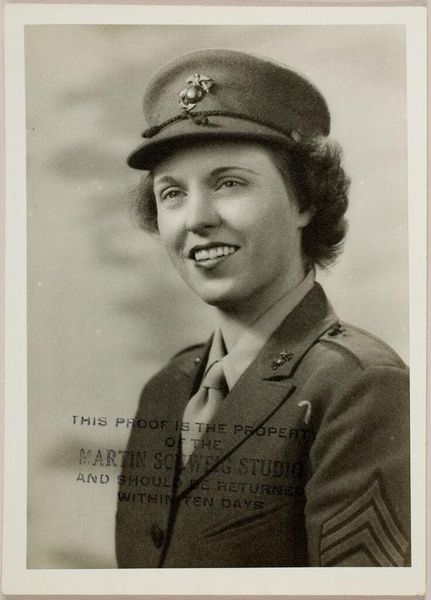 Editor: Here we have an undated, untitled portrait of a young man in uniform by Martin Schweig. I'm struck by his direct gaze; what do you see in this piece? Curator: The symbols are fascinating. The uniform, the hat's emblem – they speak of duty, service, and perhaps sacrifice. The photograph is a potent cultural artifact; it embodies a specific ideal of masculinity and patriotism from the time it was taken. Editor: So, you're saying the symbols create a layered meaning? Curator: Precisely. The young man's gaze also holds a certain vulnerability, a human element against the backdrop of institutional power. It serves as a reminder of the individuals who embody these symbols. Editor: That's a perspective I hadn't considered. Thanks! Curator: It is a poignant reminder that beneath the symbols lies a complex human narrative, always marked by specific experiences and beliefs.