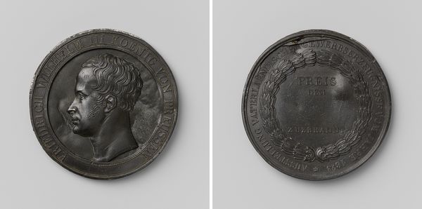 Curator: What strikes me immediately is how this simple medal portrays immense power, like a historical event compressed into something you could hold in your hand. Editor: Exactly. What we're looking at is a piece titled "Overwinning van de Fransen bij Kassel, ter ere van de hertog van Orleans," which translates to "Victory of the French at Kassel, in honor of the Duke of Orleans." It likely dates between 1684 and 1700. The artist behind this metal relief is Nicolas Delahaye. Curator: It’s interesting to see what victories are chosen for commemoration. Kassel…was it really that important to Louis XIV’s expansionist aims? What statements were being made about French power through distributing such objects? Editor: I think these commemorative pieces offer insights into the construction of national identity and the dissemination of propaganda. Bronze lends an air of authority. And think about the skill involved in miniature relief sculpting! It elevated artisans even while promoting aristocratic authority. Curator: Absolutely. And the way Delahaye uses the material—it's not just bronze, it's *worked* bronze. Each strike to create this kind of detail showcases skilled labour and technique while memorialising those with real political power and sway. This is where we start to blur the lines of “fine art.” The choice of medium reinforces these established hierarchies. Editor: Precisely. Looking at the detail, especially the crowded scene of battle on the reverse, I'm struck by how such a small object encapsulates so much. The artistic style chosen clearly evokes that Baroque style. Think of how medals, prints, and even tapestries broadcast political narratives. Curator: But do these medals really impact the larger socioeconomic landscape? Were these things readily available, or was its purpose instead something much more selective for those with certain political affinities or monetary means? These are tools for specific contexts. Editor: I suppose what I consider most are things like distribution—were these purely gifts for nobility or did merchants acquire them, therefore placing value onto material and allowing an understanding of these things through society? That would really transform its public role. Curator: On one hand, it’s incredible how material and artistic labor came together for purposes of shaping public memory. Editor: And I’m fascinated by how it played into creating cultural memory in the first place and by what that piece of cultural identity really sought to communicate.