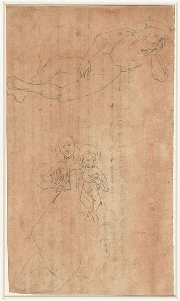 Editor: So here we have Renoir's "Gabrielle, Jean et une petite fille" from 1895, a drawing done with colored pencil and graphite. It feels... intimate, almost like catching a private moment. What do you see in it? Curator: It breathes, doesn't it? Like a whisper of sunlight on skin. For me, Renoir always feels deeply personal. It’s not just observation; it’s almost… reminiscence. The Impressionists, right? Capturing light, movement, fleeting moments. But with Renoir, it's like he's reaching for something beyond that, into the very soul of the people he portrays. What does it make *you* feel? Editor: Definitely warmth and a sense of calm. Is that the “impression” he wanted to convey, beyond the subjects themselves? Curator: Exactly! Think about the materials, too. Pencil and coloured pencil are so immediate, so… human. No grand gestures here, just a gentle tracing of a moment in time. Do you get a sense of how he layers the tones, how the lines almost vibrate on the paper? Editor: Now that you mention it, yes! It gives it such a soft, dreamlike quality. Almost like a faded photograph. Curator: Almost, yes. I keep thinking that, unlike the sharpness of photography, that's the beauty, really. The "impression" becomes something lasting. Editor: It’s amazing how much emotion he evokes with just simple lines, and knowing that the snapshot of everyday life can be art, in itself. Curator: Isn't it, though? It’s almost… reassuring. He is speaking his heart here, using something modest and direct. Like he's saying, "Look! Beauty isn't just grand landscapes and battles. It's right here, in this quiet moment, with these people I love.” It has moved me to tears more than once! Editor: I’ll never look at a simple drawing the same way again! Curator: Nor will I, especially after this enlightening discussion! Thanks!