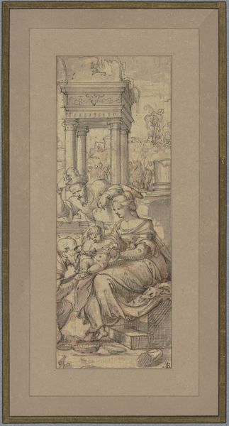 Antonio da Cremona rendered "Holy Family with Anna" in brown ink on paper. The scene depicts the Virgin Mary with the infant Jesus, Saint Anne, and Saint Joseph. During the time this piece was made, the concept of family was being utilized to reinforce social and religious norms, and images like this served to promote an idealized vision. Yet, if we look closely, we can see that the artist subtly disrupts traditional representations. Mary's gaze, for instance, is directed downward, away from the child. There is a sense of introspection, hinting at the complex emotional landscape of motherhood. Moreover, the inclusion of Saint Anne speaks to the importance of female lineage and intergenerational relationships. The bond between mother and daughter adds a layer of emotional depth to the scene. It gently acknowledges the crucial roles women played in transmitting values. This artwork serves not only as a religious icon, but also offers a glimpse into the intimate dynamics of family life, inviting us to reflect on the complexities of human connection across generations.