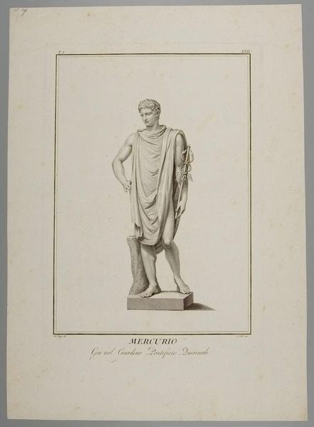Editor: This is a portrait bust of Michelangelo by Giuseppe Barni. The details in the face and drapery are incredible! What elements of its composition stand out to you? Curator: Note the stark contrast between the detailed bust and the plain background. This directs the eye solely towards the sculptural form. The play of light and shadow across the figure is masterful; how does that strike you? Editor: It really emphasizes the texture of the beard and the folds in the fabric. I hadn't noticed that before. Curator: Precisely. And consider how the engraver, Barni, translated the three-dimensional form into a two-dimensional image. It is a study of form and tonal variation in itself, wouldn’t you agree? Editor: Yes, absolutely. It's like a conversation between sculpture and printmaking. Thanks for pointing out those details! Curator: My pleasure. Studying how artists utilize form, light, and texture is key to understanding their work.