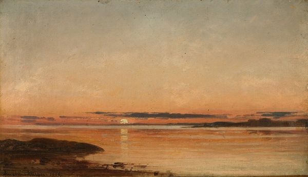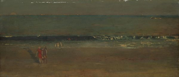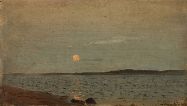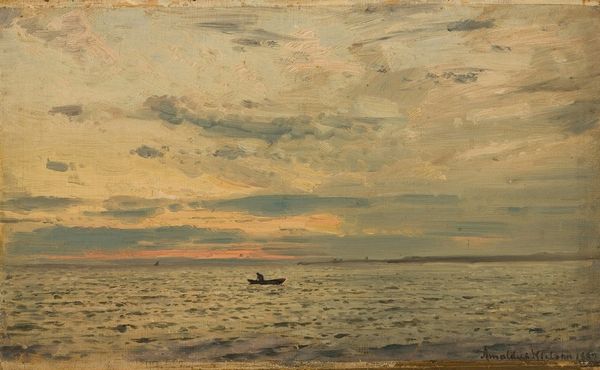 Amaldus Nielsen painted this seascape, “Stemning, Arisholmen,” capturing a specific mood with oil on canvas. The work typifies the artistic shift in late 19th-century Norway, as artists sought to establish a distinct national identity through landscape painting. Nielsen’s choice of subject matter – the Norwegian coastline – aligns with the cultural movements of the time. As Norway sought independence, artists turned to the natural landscape as a source of national pride. The sea, in particular, held symbolic weight for a nation historically tied to maritime activities. The painting’s formal elements reinforce this sense of national identity. The muted palette evokes the specific atmosphere of the Norwegian coast. The composition, with its emphasis on horizontal lines, suggests a vastness and openness, reflecting Norway’s geography and its people's connection to the sea. To fully understand Nielsen’s painting, we can consult historical records, such as exhibition catalogues and period publications, to understand how the painting was received. This kind of research reveals the complex interplay between art, national identity, and cultural institutions.