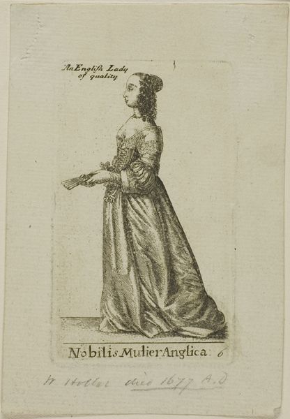 Editor: This is an engraving of Anna-Maria van Oostenrijk, or Anne of Austria, by Stefano della Bella, dating roughly from 1620 to 1664. The print seems quite small, but there's a formality and gravity in how she is presented. What stands out to you? Curator: I immediately think about how prints like this functioned in the 17th century. They weren't just artistic creations, but key forms of media. Think about how the artist carefully constructed her image. "Pieuse" or "Pious," it says up there, next to the number "10" perhaps suggesting this was one of a series. And then the lengthy inscription… it is crafting and controlling her public persona. Consider how a print like this could circulate, shaping opinions and solidifying power. What’s striking to you about this interplay between the visual and the textual? Editor: It makes me think about Instagram today, a kind of branding! Except this seems more… intentional, less spontaneous. Did Anna-Maria commission this, or was it something circulated independently? Curator: Excellent question. These images often had multiple authors and patrons. Artists, publishers, even the subject, might have had a stake in its production and dissemination. Each seeking to use the imagery to bolster their public reputation. We have to remember that imagery serves very clear political ends, even an ostensibly simple portrait. Does understanding the social function of this piece change how you perceive it? Editor: Absolutely! It shifts it from being just a portrait to being a piece of political messaging. It gives me a different appreciation for all the "staging" and the details in the work. Thank you for that. Curator: My pleasure! Thinking about art as an integral component of its time always makes it far more compelling for me.