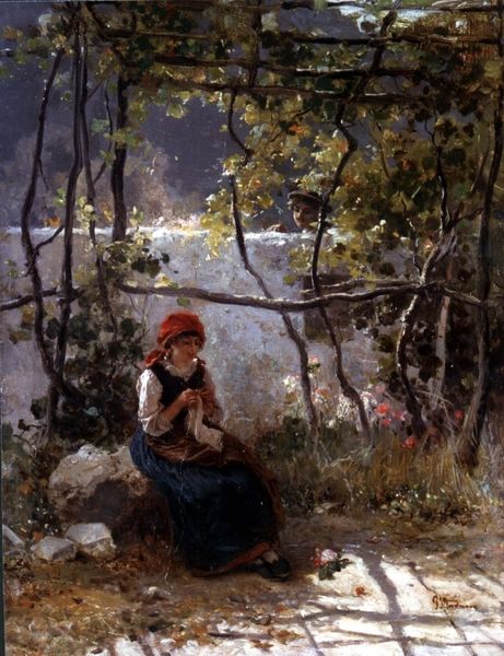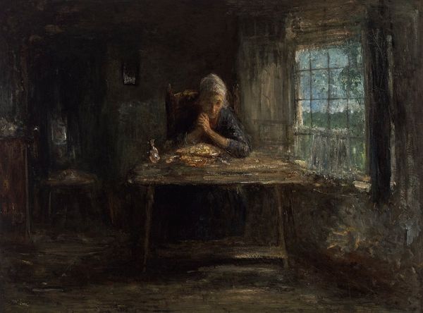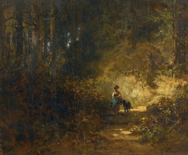 Carl Spitzweg created *The Hermit in front of His Retreat* with oil on canvas, presenting a scene where light and shadow carve out a space of contemplation. The painting is divided into two distinct zones. To the left, a dark, enclosed space houses the hermit, absorbed in reading. To the right, an open, sunlit area where rabbits gather by a water source. The hermit's retreat seems less a rejection of the world and more a negotiated coexistence. The use of light and shadow, and the precise arrangement of elements, suggests a deeper meditation on the nature of existence. Spitzweg, known for his humor, does not present the hermit as a figure of stark renunciation. Rather, he destabilizes conventional categories, offering a more nuanced vision of life's dualities. Consider how Spitzweg uses light not just aesthetically but as a philosophical tool, illuminating the complex interplay between solitude and connection, nature and culture, withdrawal and engagement. This tension reflects a broader artistic and philosophical discourse, inviting us to continuously interpret and reinterpret its meanings.
