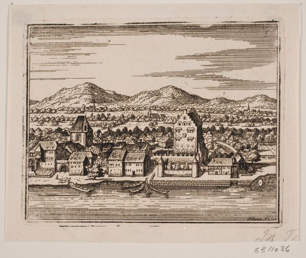 This rendering of Bouvignes-sur-Meuse is achieved through precise lines that map out the town and its surrounding landscape. The formal structure of the composition is divided into three horizontal bands: the river in the foreground, the town in the middle ground, and the hills capped with a fortress in the background. The artist employs a semiotic system where architectural elements stand as signs of civilization and order against the natural landscape. This contrast between the geometrically organized town and the freely rendered hills subtly destabilizes the fixed binary of nature versus culture, suggesting their interdependence. The artist’s focus on precise lines serves not merely as descriptive devices, but as cultural inscriptions reflecting an era keen on structuring knowledge through observation and categorization. This approach reveals a philosophical engagement, where the act of drawing becomes an act of understanding and ordering the world.