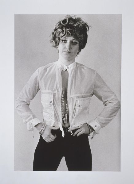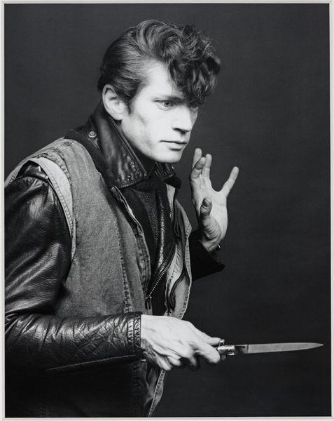 Curator: So, here we have Andy Warhol's "Unidentified Man (Thick Black Hair)" from 1980, a mixed-media piece incorporating photography. Editor: It's intriguing! I am struck by how the commercial photography process is laid bare, and that seemingly nonchalant title removes any attempt at heroic portrayal that often goes along with portraiture. What is your perspective on this piece? Curator: It's all about deconstructing the aura of the subject through the very act of reproduction, isn't it? Warhol's insistent use of industrial techniques challenges the conventional, romanticised view of artistic labor, right? It makes you consider how mass production influences the value we ascribe to imagery, especially regarding identity. What do you make of his choice of a Polaroid for this? Editor: Well, the instant nature of the Polaroid seems perfect for Warhol’s focus on mass production and immediacy. It feels almost…democratic. Do you think he's commenting on celebrity culture? Curator: Precisely. It challenges notions of authenticity by mimicking its form with widely accessible materials. Consider too the labor behind those vibrant colors – it's about the industrial processes driving art making. It’s a critical statement, almost a mirror reflecting late 20th-century material obsession. Is the “unidentified man” a stand in for all of us, rendered equal in an image-obsessed consumer society? Editor: That's fascinating, reframing the "Unidentified Man" as every man, or perhaps every consumer, caught in the cycle of production and consumption. I had originally focused on the person represented, but now understand it is more about artistic intention using the production methods and accessibility to demystify portraiture. Curator: Precisely! The work prompts you to examine assumptions about artistic creation, challenging traditional boundaries of 'high art', focusing more on production, and its reflection in social structures. It provides an active view of material culture in the Pop art context. Editor: I'll definitely think more critically about art-making processes after this. Thanks for your insight.