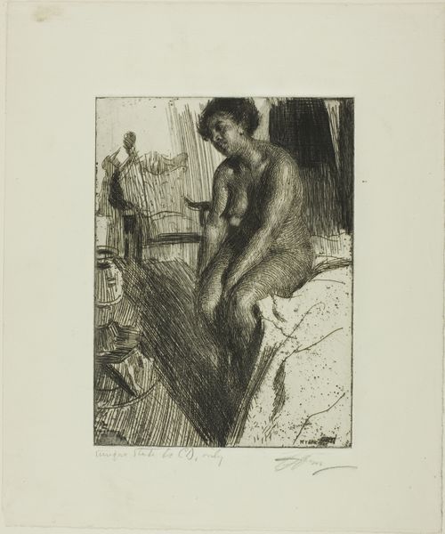 Anders Zorn created this etching, "A Dark Corner", in 1893. It depicts a nude woman standing in what appears to be a bedroom, with a man partially visible in the shadows. Zorn was Swedish, and though he spent much of his career in Paris, he maintained a fascination with the culture of his homeland. Looking closely, we can ask how the image creates meaning through visual codes. The woman’s nudity, for example, might reference both classical ideals of beauty, but also a more modern and perhaps provocative depiction of the female form. Sweden at the end of the 19th century was undergoing rapid modernization, with growing social tensions. Artists like Zorn often grappled with questions of national identity. Etchings like this one could be seen as both celebrating and critiquing contemporary social norms. Historians of art can bring many kinds of research to bear on its interpretation, exploring sources from artist biographies to exhibition reviews to social surveys. It is through those means that we come to see art's meanings as contingent upon the cultural and institutional context of its making.
