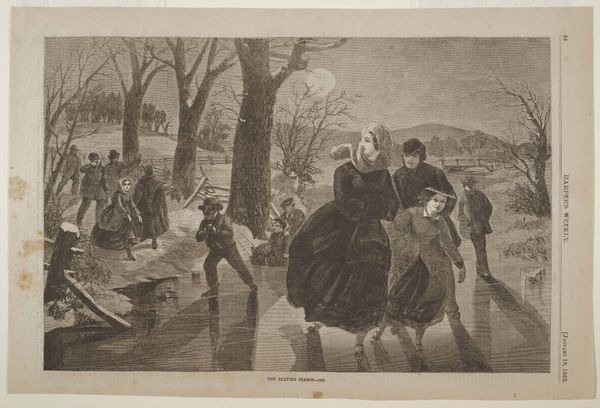 Winslow Homer created this wood engraving, “The Sleighing Season--The Upset,” for *Harper’s Weekly* in the 19th century. Engravings like this were the newspapers and magazines of their day, carrying news and entertainment across the country. To make this image, Homer likely created a detailed drawing, which was then painstakingly translated into a series of lines on a block of wood. This required an immense skill set. Using specialized tools, the engraver would carve away the negative space, leaving only the lines that would ultimately hold ink. The block could then be used to make many prints. The process was labor-intensive, but it allowed images to be reproduced quickly and widely, fueling the growth of mass media and a visual culture. Homer's image captures a moment of chaos and perhaps a commentary on the leisure activities of the upper class, making a direct connection between artistry and social commentary.