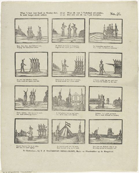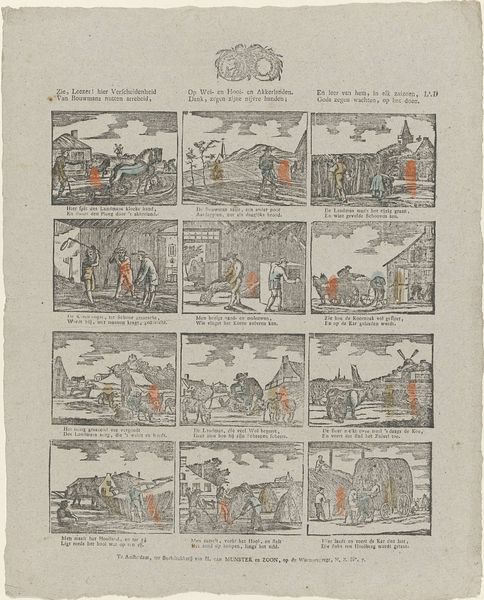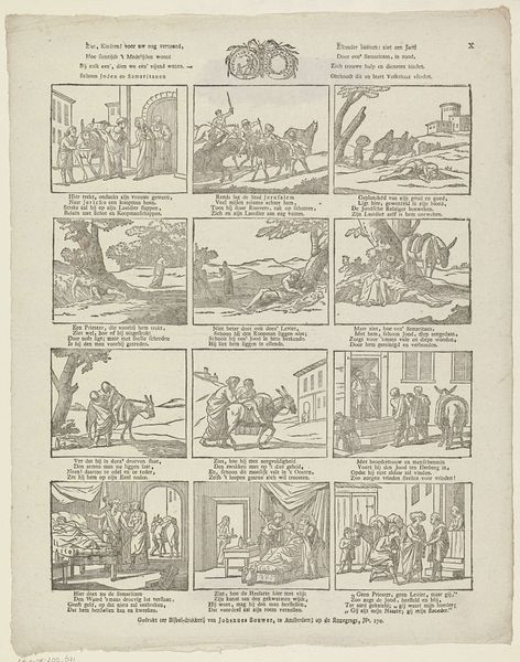This print, made by Alexander Cranendoncq, commemorates an event in Hoorn. The dominant images here are scenes of people fleeing, soldiers marching, and moments of rescue. These reflect themes of turmoil, conflict, and salvation. The motif of flight, visible in multiple panels, echoes throughout art history as a symbol of fear, escape, and the search for safety. We can trace this back to biblical stories like the Flight into Egypt, where Mary and Joseph flee with the infant Jesus to escape Herod’s persecution. The psychological weight of this image is palpable, tapping into our primal instincts of self-preservation and protection of loved ones. Consider how the act of fleeing is depicted differently across time. In classical art, it might be a heroic escape, whereas here, it is a desperate act born of conflict. This transformation speaks to the cyclical nature of history, where the same motifs reappear, evolving and adapting to new contexts, engaging viewers on a subconscious level and reminding us of the continuities in human experience.