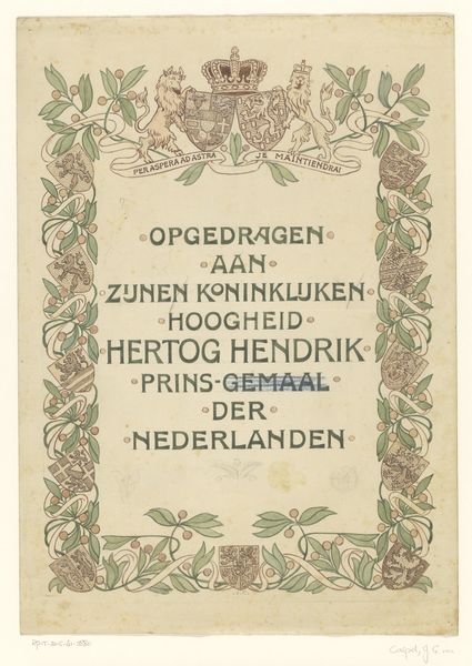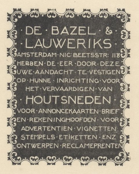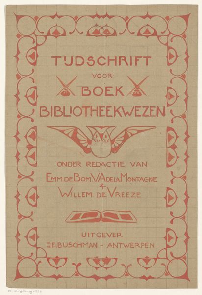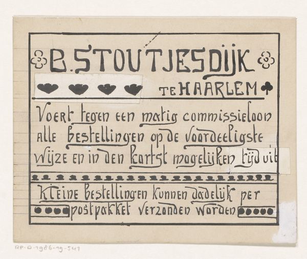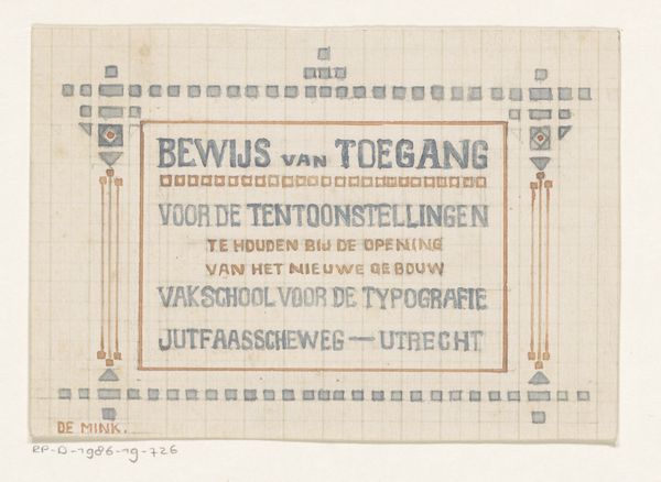 Curator: At first glance, the typography seems like an architectural blueprint for a utopian city. Editor: Fitting, then, that this drawing, created sometime between 1874 and 1932, is titled "Ontwerp voor de omslag van de folder Catalogus der n.v. Theosofische Ver. Uitgevers Mij. Amsterdam" — or, "Design for the cover of the catalog of the Theosophical Society Publishing Company, Amsterdam" – by Mathieu Lauweriks. It’s rendered in graphic art on paper. Curator: Exactly! Theosophy sought to unify diverse spiritual and philosophical traditions. The almost blocky, monumental lettering, hints at stability, tradition and the notion of foundational knowledge. This visual language certainly resonates with the Theosophical Society’s aims. Editor: I'm intrigued by the visible grid underneath the text. It betrays the hand-made quality, but it doesn’t break the rigid visual impact—it adds another layer of process. The grid itself is a symbol of imposed order, challenged and humanized by Lauweriks' style. Curator: It highlights the interesting tension here between individual expression and structural systems, a kind of negotiation between freedom and control so critical to discussions around theosophy itself as an organizational system attempting to manage human belief and connection to a spiritual domain. Editor: Plus, there's the slightly fading type near the bottom of the composition… It mirrors the idea that even seemingly solid structures can be ephemeral. Everything transforms. Curator: Absolutely. That notion of transformation connects us to ongoing debates surrounding identity, the destabilizing effect of modernity on long held certainties. As a draft design, the piece really gets me thinking about the provisionality of all systems, even those, like Theosophy, promising absolute knowledge. Editor: For me, it's like stumbling upon a beautiful ruin—a fragment of a grand, unfulfilled ambition. A testament to the human need to organize… well, everything! Even the unorganizable. It's really thought-provoking on that level.