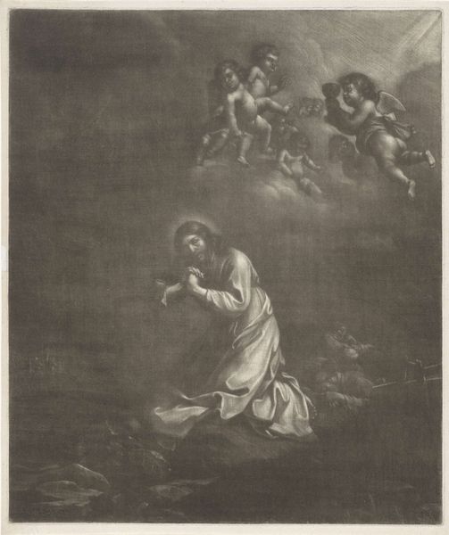 Editor: So, this is "December," an etching by Cornelis Dusart, created somewhere between 1679 and 1704. It's a busy scene, figures struggling against what I assume is winter weather. The mood seems harsh, maybe a little comical too? What catches your eye in this piece? Curator: Ah, Dusart's "December," a true glimpse into Dutch Golden Age life, or at least a particular perspective on it! I'm drawn to the raw energy. Those aren't just figures struggling, but characters—each with their own implied story. Notice how the artist used etching to create textures that evoke both the biting wind and the heavy clothing. I almost feel like I can hear the whoosh of the wind in that dark sky... but I wonder, what does the December weather make you *feel*? Editor: Cold, definitely! And a bit… chaotic? I see people slipping and struggling, but they also seem bundled up, like they’re used to it. Is this meant to be funny? Curator: Perhaps, or maybe a bit ironic. Daily life, even in hardship, has its routines. Think about the details: the bundled clothes, the determined expressions. Does that chaos, to your eye, overshadow the…humor? Because for me, Dusart captured not just the struggle, but a stubborn resilience. Editor: I guess I see both now. The figures do seem determined, despite the obvious discomfort. The… resilience helps. I hadn't considered that. Curator: That’s the beauty of art, isn’t it? We bring our own "weather" to the experience. This etching is now as much your reading of it, as Dusart’s initial creation. Editor: Right. Looking at it again, it feels less like a simple, cold struggle and more like a…celebration of surviving winter? Thanks! Curator: Precisely. Consider also what "December" might represent beyond the literal: the ending of a cycle, the preparation for renewal… art always invites new journeys.