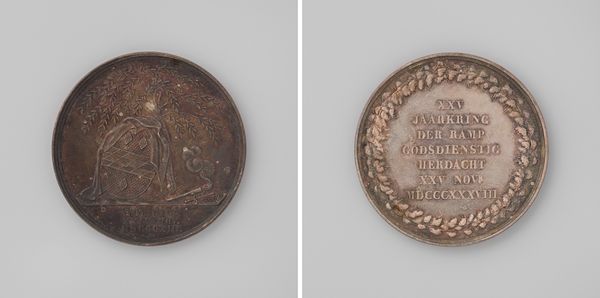Editor: Here we have a bronze portrait medal titled "Overlijden van Willem Farel, hervormer in Frankrijk en te Geneve," created by Jean Dassier in 1725. The piece has an austere feel to it, a stern profile. How do you interpret this work? Curator: This medal opens up a fascinating dialogue between religious reformation, identity, and the power of representation. Dassier created this medal almost two centuries after Farel's death. I think it's interesting to consider the motivation to commemorate Farel so long after his active life. How was his image and legacy being deployed in the 18th century? Editor: That's an interesting point. So it's less about the man himself and more about what he represented at the time the medal was created? Curator: Exactly. Farel was a key figure in the Reformation, advocating for significant changes to religious doctrine and practice, impacting social structures and individual freedoms. Think about the context: 1725, well after the initial religious wars but in a period where religious and political identities were still deeply intertwined. This medal would have circulated amongst a particular segment of society; perhaps they sought to either embolden or control certain narratives around religious and social change. Editor: It's interesting to think about the political implications embedded in a seemingly simple portrait medal. I guess, remembering to ask *who* created *what, when*, and *why* will now be part of my analysis! Curator: Precisely. Art objects aren’t made in a vacuum, they are loaded with societal, political, and personal messages. Engaging with art this way, makes you more attentive to the power structures.