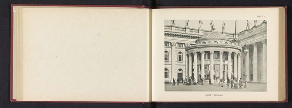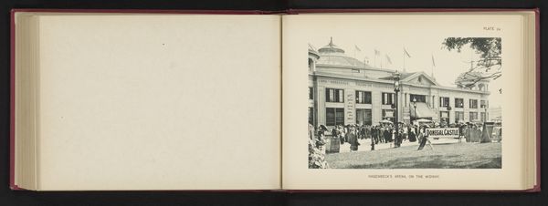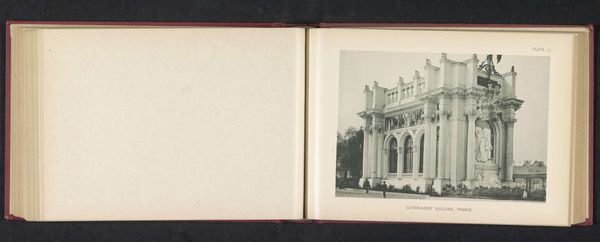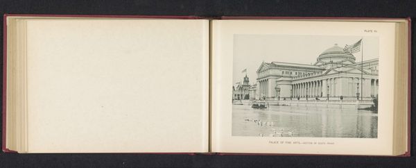 Editor: Here we have Charles Dudley Arnold's albumen print, "View of a Concert Hall at the World's Columbian Exposition in Chicago, 1893." The stark neoclassical building and its reflection… it feels monumental, but also slightly ephemeral in this hazy, old photograph. What stands out to you about this image? Curator: What’s fascinating is thinking about this photograph not just as an image, but as a physical object. Consider the albumen print process itself - layering organic material to fix an image. And this image depicting a building from the World's Columbian Exposition… these were temporary structures, often built quickly and cheaply. The photograph memorializes a space meant for spectacle and consumption, now long gone. Editor: So, the material fragility of the photograph contrasts with the apparent permanence of the building in the picture? Curator: Exactly. This wasn't built to last, despite its grandiose architectural pretensions. How do you think that tension—between permanence and impermanence, between high art and practical construction—plays into our understanding of the Columbian Exposition and its aims? Editor: I guess it reminds us that even things meant to impress can be fleeting, and that photography, a medium that itself undergoes physical transformations, captures that transient quality quite well. Curator: Precisely. By focusing on the means of production - both of the building and the image - we reveal underlying contradictions about progress and material culture at the turn of the century. Editor: It’s really interesting to consider the photograph as an artifact, with its own lifespan and story of production, rather than just a window onto the past. Thanks! Curator: My pleasure. I think understanding how things are made and from what opens up a completely new way to understand the messages they’re trying to convey.