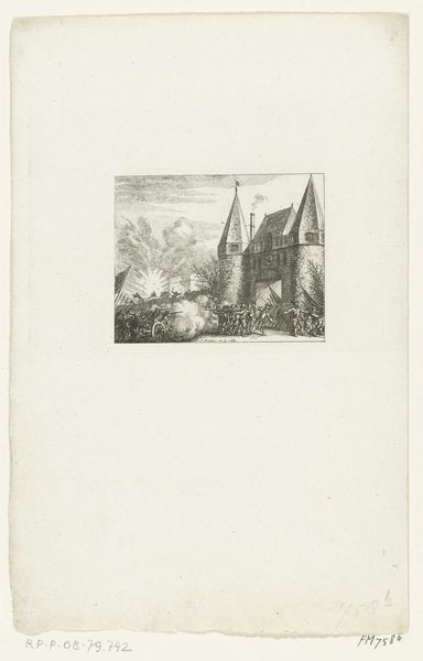 Curator: This is "Vertrek van de Staten Commissie van Rotterdam, 1786" by Reinier Vinkeles, made sometime between 1783 and 1795. It combines etching, engraving, and pen on paper. It’s quite a detailed cityscape, isn’t it? Editor: It is. My immediate sense is one of subdued ceremony. The palette is limited, which lends a formality to the departure scene, yet there’s a certain…ordinariness, if that makes sense. It feels less like high political drama and more like Tuesday morning. Curator: I see what you mean. Vinkeles was a master printmaker, and here he employs combined methods to produce quite a textured surface. Look at the variation in line work! Think of the labor and skill that go into translating an entire city onto this copperplate! Editor: Absolutely. The textures and lines evoke a very precise time in Rotterdam’s history, a city bustling with trade and power, though I can’t help but view the "departure" within the larger context of late 18th-century European politics, where revolution was in the air, challenging those old guard structures. Curator: Precisely! And observe how Vinkeles crafts perspective. We get this wonderful layered depth, almost theatrical—the boat pulling away, figures in the foreground, the architectural mass of the city rising behind. Editor: The composition almost creates a division of class—those in the boat being rowed away versus those on the shore. It begs the question: who is benefiting from this system? And at whose expense is this elaborate departure taking place? This piece invites that conversation about societal power structures of the day. Curator: A very astute observation. It's in collections with titles that involve "genre-painting." It’s the everyday and not-so-everyday labors and interactions that produce such moments. Think of the inks and papers being produced, transported, sold – all integral to creating and disseminating this image to wider audiences. Editor: It makes you think about access, too. How many people actually saw this print, and what did they make of it? What conversations did it start, or was it meant to reinforce the prevailing social and political norms? These artworks offer valuable opportunities to consider whose stories get told and how. Curator: Ultimately, it really exemplifies how Neoclassicism pulled from Baroque style; a confluence that really enhances the power in this engraving. Editor: Indeed, offering a snapshot not just of Rotterdam, but of a world on the cusp of transformative change, prompting me to reflect on the continuous ebb and flow of societal structures and who benefits and suffers.