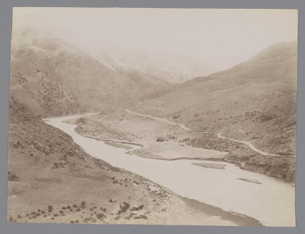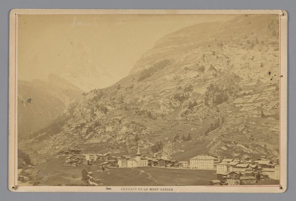 This photograph, "Gezicht op berghotel Schwarenbach aan de Gemmipas," by Arthur Gabler, invites us to consider the convergence of landscape, labor, and leisure. The albumen print, a popular photographic process of the 19th century, was created by coating paper with a layer of egg white and then a light-sensitive silver solution. The resulting image, sepia-toned and rich in detail, captures the rugged beauty of the Swiss Alps. This photograph would have involved a skilled photographer, darkroom technicians, and a robust distribution network. What's particularly compelling is how the image itself reflects the human endeavor to tame the landscape, the hotel perched precariously on the mountainside. It is a testament to human ingenuity and the burgeoning tourist industry. Paying close attention to materials and making allows us to appreciate the many layers of meaning embedded in the work, and question the value of art and craft.