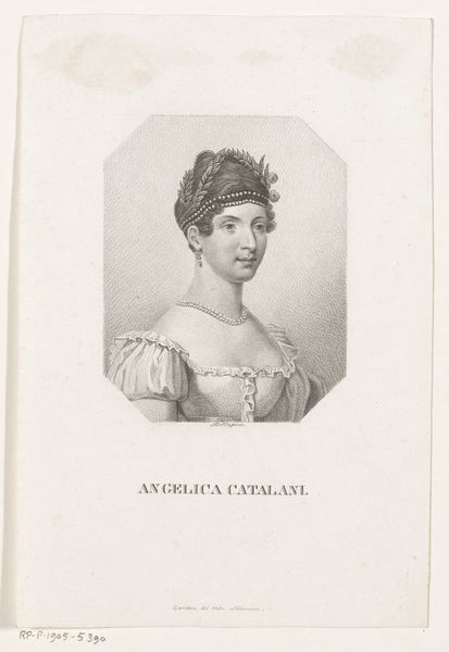Editor: Here we have Jean Jacques François Monanteuil’s “Portret van een jonge Italiaanse vrouw,” dating from sometime between 1818 and 1842. It’s rendered in pencil, and something about the woman’s gaze gives it an air of quiet dignity. What do you see in this piece that I might be missing? Curator: Oh, she’s captivating, isn't she? Look at the way the light dances across her face – almost as if Monanteuil were trying to capture a fleeting moment of inner reflection. Her hairstyle and dress firmly root her in the early 19th century. The pencilwork has this delicate, almost fragile feel. What do you think that says about the era, or perhaps Monanteuil’s view of women? Editor: Fragile... that's interesting. I hadn't thought of it that way. I was just thinking how poised she seems, like she knows exactly who she is. Maybe the delicate lines are more about precision and control, then? Curator: Ah, perhaps! It’s like peering into a whisper from the past, isn’t it? The fashion certainly dictates some of the poise - or maybe she truly carried herself in that particular way. This really shows you that you can draw power even from a seemingly subtle piece. Editor: Absolutely! Thanks for making me look at it with new eyes. I hadn’t considered the connection between her appearance and the historical context before. Curator: My pleasure! Isn’t it wonderful how a single image can hold so many stories and provoke such different thoughts!