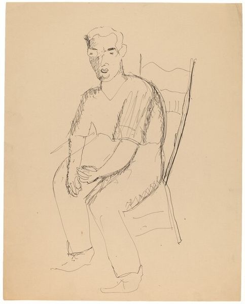 Curator: Up next we have Sir William Rothenstein's sensitive drawing, "Mr William Archer [Part II]", held in the Tate Collections. Editor: It's all lines and angles, isn't it? Sparse but somehow complete. He seems very serious. Curator: Rothenstein has really captured something of Archer's introspective nature. It's economical, this drawing. No wasted marks. Editor: Look at the hatching on his coat - it almost melts into the background. It’s this tension between defined form and dissolving lines that makes it so engaging. Curator: The lack of firm dating makes it even more interesting. It speaks to a timeless quality, doesn't it? Editor: Yes, precisely. There’s a quiet thoughtfulness here that transcends time. Curator: A study in simplicity, perhaps. Editor: Indeed. One is left pondering the power of understatement.