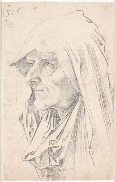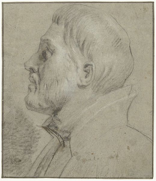Curator: This is a charcoal drawing from the early 16th century titled "Portrait of the financier and merchant Jacob Fugger." Editor: What strikes me immediately is the starkness of the rendering—the use of charcoal really emphasizes the textures, creating a tangible sense of depth and form. Curator: Absolutely. Understanding Fugger is understanding early capitalism. This portrait, created around 1514-1515, captures a man at the intersection of massive social and economic shifts. He essentially funded emperors. Editor: Observe the way the artist uses line and shadow to model the planes of his face—it's almost sculptural. The lines around the eyes and mouth tell a story of lived experience, resilience perhaps, or even the toll of power. Curator: His power was immense, but the impact of such financial control is often overlooked in social narratives. Consider how such powerful figures like Fugger, often obscured from our immediate view, profoundly affect(ed) the daily lives of so many across all societal stratifications, and not always equitably. His gaze holds an unwavering presence, challenging the viewer's own assumptions. Editor: I’m interested in that gaze, as well as the overall composition. The tight cropping forces us into an immediate and unavoidable engagement with the subject. Curator: It’s precisely that immediacy which the artist sought to instill: a recognition that these powerful figures, these titans of industry and commerce, have a hand, knowingly or unknowingly, in shaping not only history, but also human nature. The fact that such portraits survive should invite us to evaluate how this work remains culturally significant, to help evaluate society, power, and our assumptions about both. Editor: Ultimately, the artwork succeeds as both an aesthetic and historical artifact, as a revealing and unflinching testament to this man’s singular power. It demands that viewers grapple with its content, and, in so doing, invites a reckoning with our understanding of art history itself.