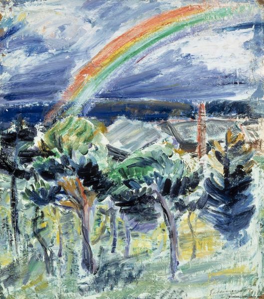 Othon Friesz made this watercolor, Regnbuen, Montiullier, with a flurry of loose washes and scribbled details. You can see that Friesz isn’t afraid to let the medium do its thing. It's like he’s trying to capture the fleeting essence of the rainbow, rather than a perfect representation. The colors bleed and blend, creating a sense of movement and atmosphere. Those turbulent skies are created with such loose brushstrokes! Look at how the rainbow emerges from a cloud with a real sense of drama. Friesz's technique is about allowing the unexpected to happen. This work feels related to other Fauvist landscapes, like Maurice de Vlaminck, where the intensity of color and the raw energy of the brushwork take precedence over naturalistic representation. Ultimately, it's a reminder that art is as much about the process as it is about the final product.