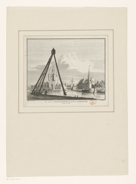 Editor: Here we have Philip Zilcken’s “Ophaalbrug,” an etching from 1888. It's a pretty simple, almost austere, image of a drawbridge over a canal. The greyish tones create this somber mood. What do you see in this piece? Curator: The image speaks volumes through its carefully chosen details and visual syntax. The bridge itself, a drawbridge, carries significant symbolic weight, wouldn't you agree? Editor: How so? It just seems like part of the city infrastructure. Curator: Infrastructure it is, but what does it *do*? It connects, but also has the capacity to divide or obstruct, right? Consider how throughout history, bridges appear as motifs in art, literature, and mythology to signify transitions, thresholds, or reconciliation. This one is captured mid-operation...it appears static and still, but is not, therefore it exists in tension. It poses a psychological question, if you will. Editor: That’s interesting, the bridge as a question mark. But it's also just... an ordinary scene. Curator: True, and that’s the beauty of it! Zilcken elevates the mundane, inviting contemplation. Also, look at how the reflections in the water create a sense of doubling, a mirroring of reality that complicates our understanding of what's solid and what's ephemeral. Do you see it now? Editor: I think so. I appreciate the new perspective, that it's not just a bridge, but something much more layered. Curator: Indeed! It's a visual poem, laden with cultural memory, a testament to the artist's insightful observation. Editor: It certainly gives a lot to think about. Thanks for pointing all of that out!