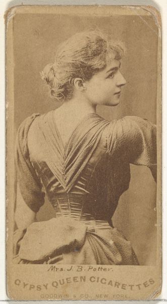 This is Card Number 225, Miss Muguel, a photographic print issued by W. Duke, Sons & Co. to promote Cross Cut Cigarettes. The card is made using mass production techniques of photography and printing, reflective of the growth of consumer culture at the time. The sepia tone lends it an air of nostalgia, but it was likely a cost-effective choice for mass production. The card's small size allowed it to be included in cigarette packs, making it a portable and collectible item. This speaks to the industrialization of leisure and the commodification of culture; the company was packaging glamour and aspiration for the masses. While it appears straightforward, its creation involved factory work, image reproduction, and distribution networks, all tied to wider social issues of labor, politics, and consumption. By examining the materials, making, and context, we can understand how this seemingly simple card reflects broader shifts in society and the intertwining of art, commerce, and everyday life.