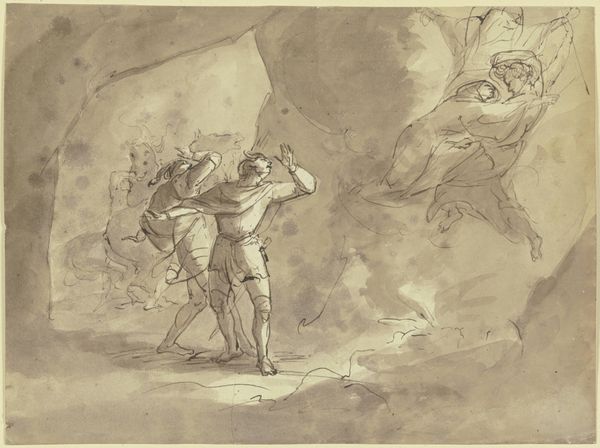 John Flaxman made this drawing of Adam and Eve Guarded by the Angels using pencil and wash on paper. The immediacy of drawing allows for quick studies of form, and explorations of composition. Here, the graphic nature of Flaxman's marks shapes the narrative, evoking the sublime themes of creation and loss. Light and shadow are rendered through the washes, creating a sense of depth and drama, the angel’s forms built up from many rapid strokes. Drawing is often seen as a preliminary step, yet it embodies a directness that can be deeply expressive in its own right. In this work, Flaxman’s artistic labor is laid bare, capturing the essence of human experience. The medium itself supports the narrative of Genesis, the raw sketchiness embodying an emotional charge, challenging traditional distinctions between fine art and craft.
