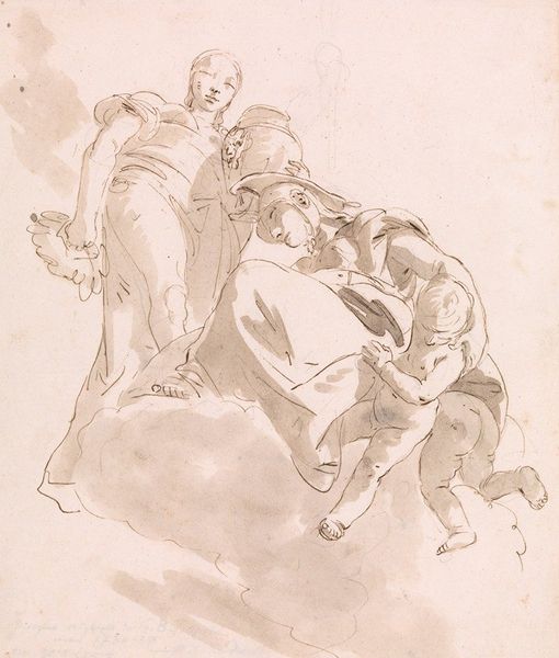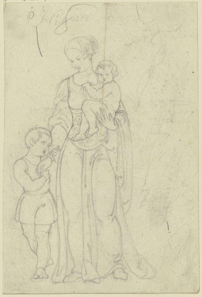 This drawing, Maria met kind en H. Johannes, was made by Claude Lorrain around the 17th century. Lorrain, who spent most of his life in Italy, lived in a society deeply shaped by religious and political structures. This sketch depicts the Virgin Mary with the infant Jesus and Saint John the Baptist, a common subject during the Counter-Reformation, reflecting the church’s effort to reaffirm its doctrines and encourage piety. The artist subtly infuses emotion into the religious scene, softening the traditionally rigid representations. The drawing's small scale invites an intimate viewing experience, drawing viewers into a private moment of maternal tenderness and divine innocence. Although the artwork uses conventional religious themes, it also emphasizes human connections, rendering a sacred scene accessible. Ultimately, the artwork shapes our understanding of religious subjects by framing them through the lens of human emotion and lived experience.
