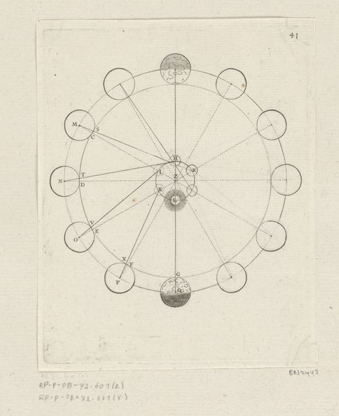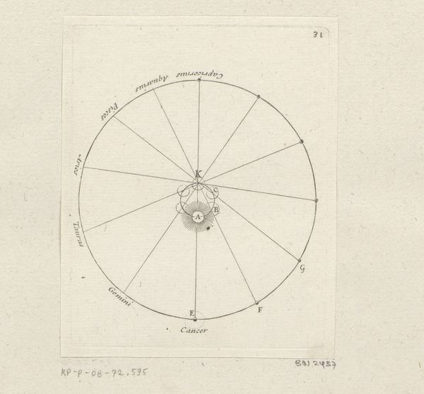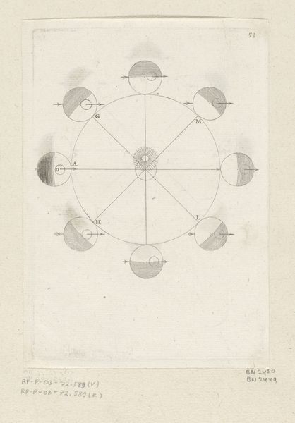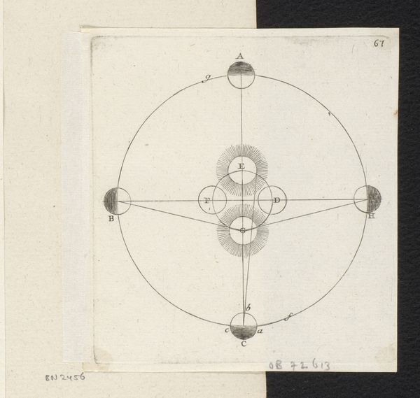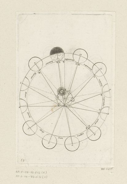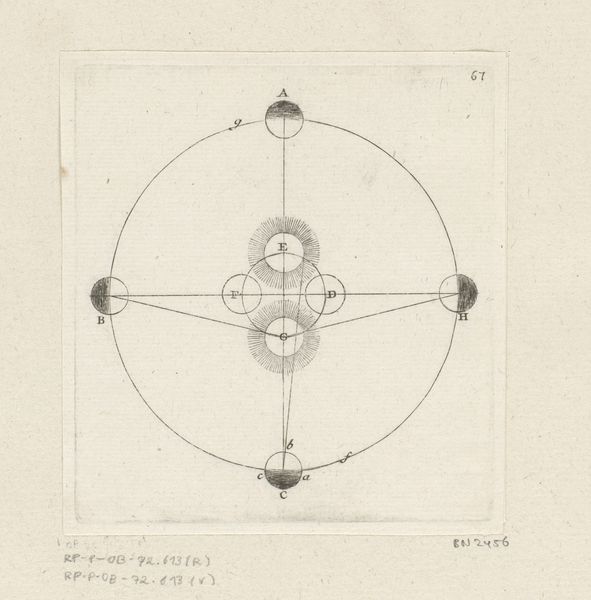 Sébastien Leclerc I created this print, Verschillende posities van de Aarde op de ecliptica, sometime in the 17th or early 18th century using etching. Leclerc, as a member of the Royal Academy of Painting and Sculpture, was at the heart of the French art establishment during the reign of Louis XIV, a time when art was used to glorify the monarchy and reinforce social hierarchies. Prints like this circulated within a society deeply invested in scientific exploration. Yet, consider how access to knowledge was highly stratified. The world of science and art academies were largely the domain of privileged men. Leclerc's work participates in this dissemination of scientific knowledge, but from a distinct position of power and authority. The Age of Enlightenment was dawning. This print embodies the spirit of rational inquiry, but we should remember that this pursuit of knowledge was far from universally accessible. It provokes questions about who was included and who was excluded from the burgeoning scientific community and what impact that has had on society.