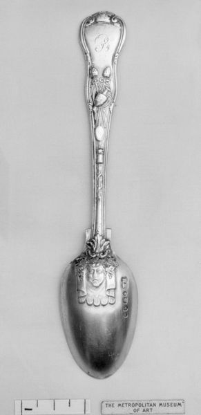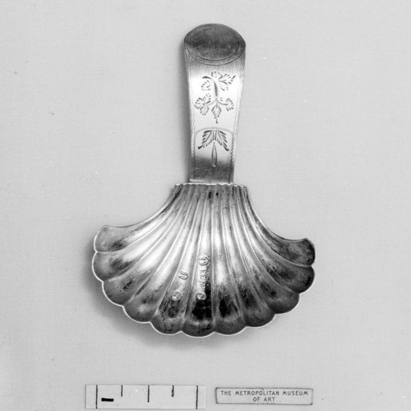 This Caddy Spoon, likely crafted in Birmingham by J.C., presents a captivating play of form and function. Notice the elegant balance between the spoon's rectangular bowl and the slender handle. The bright sheen of the metal accentuates the intricate, leaf-like engravings that adorn the handle and bowl. The scalloped edges of the bowl create a rhythmic pattern, softening the object's rigid geometry. The spoon's design is not merely decorative. The floral motifs, for instance, reference nature and luxury, signifying the rituals of tea consumption within a specific social context. The careful symmetry and refined details speak to an underlying structure, reflecting broader cultural codes of elegance and sophistication. Ultimately, this Caddy Spoon offers a glimpse into a world where everyday objects embody deeper cultural values. The formal qualities of the spoon – its shape, texture, and ornamentation – work in harmony to convey meaning, inviting us to consider the complex interplay between form and culture.