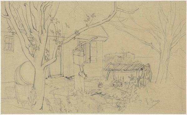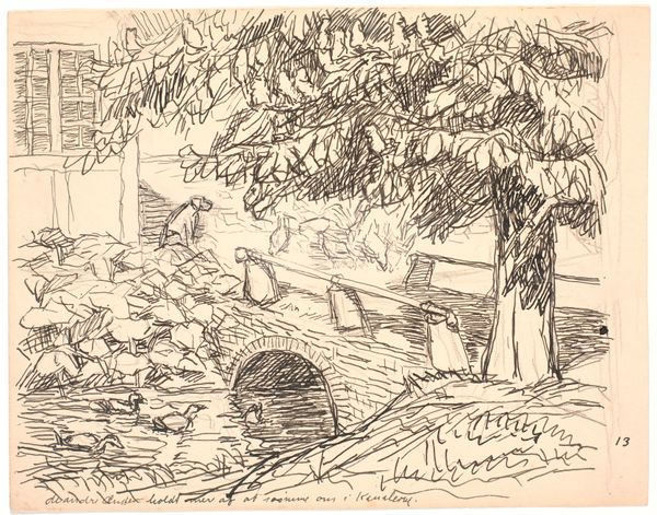 Jozef Israëls made this drawing of a farmyard scene with pencil on paper. Israëls was a Dutch painter known for his sympathetic depictions of working-class life. This sketch offers insight into the artistic culture of the Netherlands in the 19th century. The Hague School, to which Israëls belonged, emphasized realism, rural subjects, and a muted palette to capture the atmosphere of the Dutch landscape and the lives of its inhabitants. Here, the rough lines and candid composition suggest a desire to represent the unvarnished reality of rural life. The figures are rendered without idealization, their forms blending into the surroundings. To understand Israëls' work fully, one would need to examine the artistic institutions of the time, the market for art, and the social conditions that shaped his subjects' lives. By consulting historical documents, such as exhibition reviews, artists' letters, and social surveys, we can better understand the complex interplay between art and society.