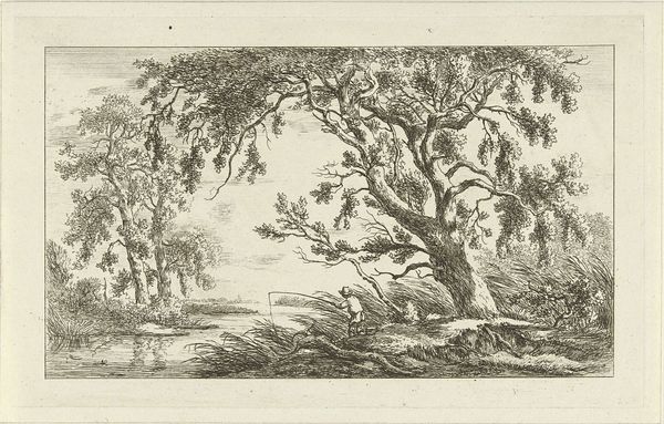 Carel Lodewijk Hansen made this etching titled "Houtsprokkelaar" - that's "wood gatherer" in Dutch. Look closely at the lines - they are the essence of this work. Etching is an indirect process. The artist would have coated a metal plate with a waxy ground, then scratched away lines to expose the metal. The plate goes into an acid bath, which bites into those exposed lines. The deeper the bite, the more ink it holds, creating a darker line in the print. The whole image emerges from this labor-intensive process, where the artist mediates their vision through material and technique. The stark contrast of black lines on white paper creates a world of light and shadow, emphasizing the stark realities of rural life. The figure of the wood gatherer, burdened by their load, speaks volumes about the realities of labor and survival. Consider the social context, and the intense labor that results in this print. Hansen elevates the everyday, drawing our attention to the lives and materials that often go unnoticed. It’s a testament to the power of craft to reveal the beauty and the challenges embedded in the world around us.